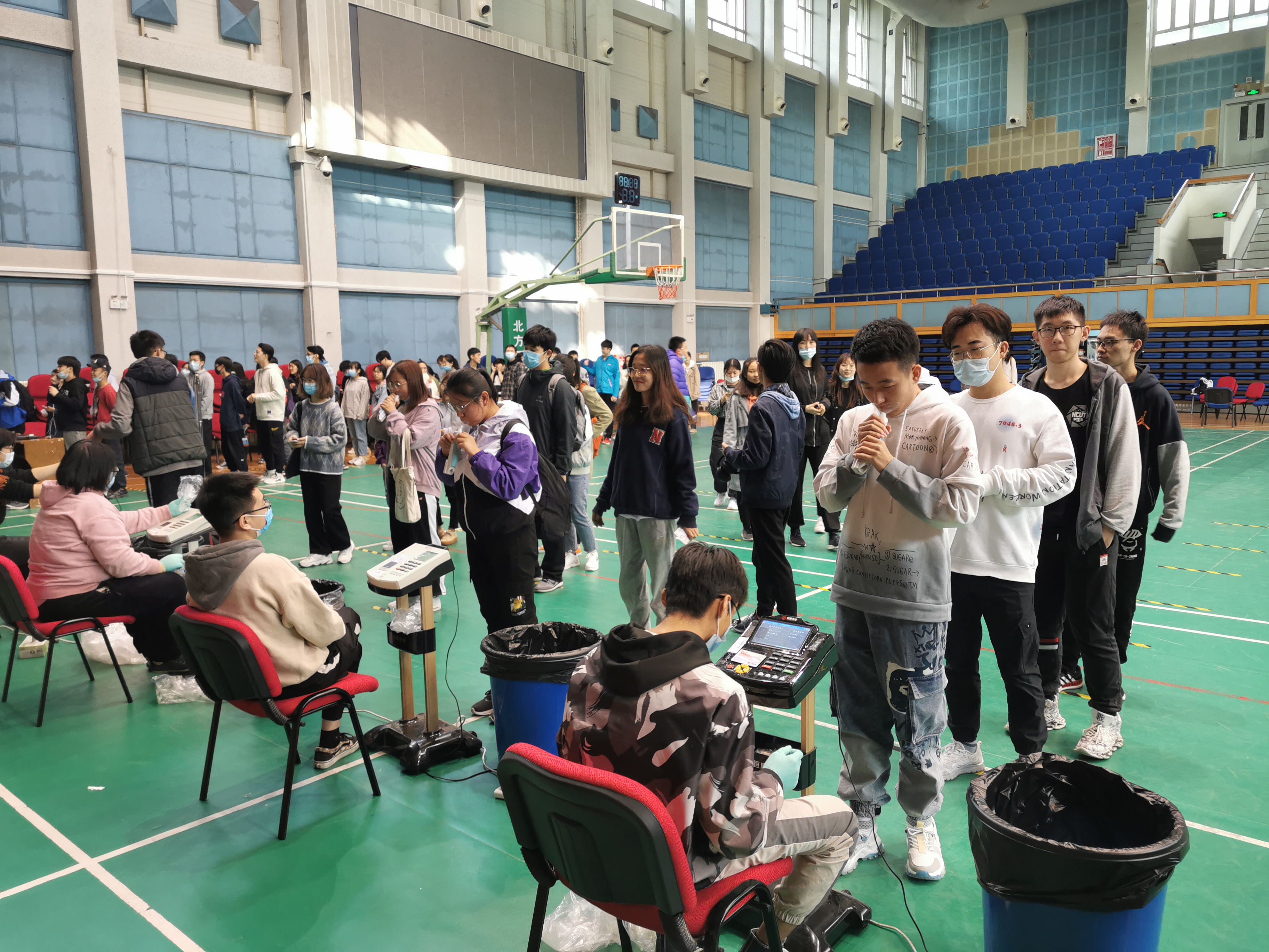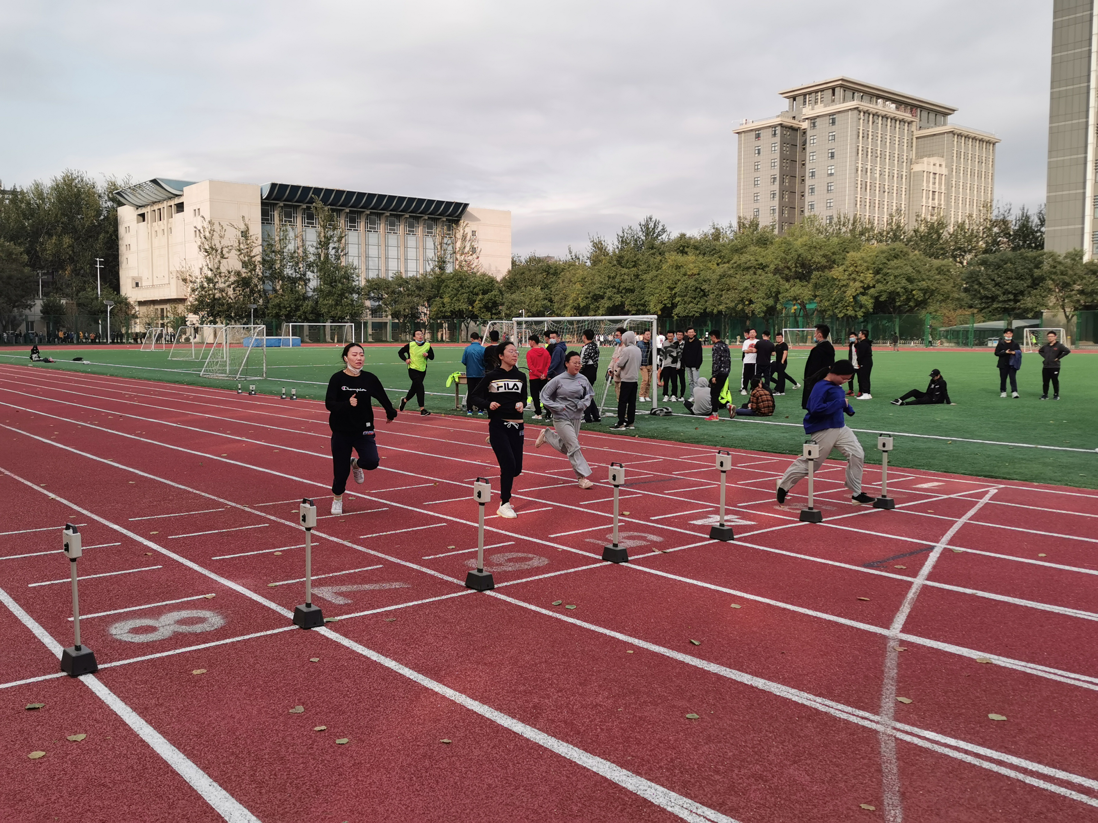 目前测试已经进行一周,测试项目包括身高体重、肺活量、视力、立定跳远、坐位体前屈、50米、1000米、800米、引体向上、1分钟仰卧起坐,全校近万名本科生需参加测试。教务处、员工工作部、安稳部、后勤处、服务中心、网信中心、公司辅导员、体育系全体教师等近百名教职员工全程参与测试工作,由于工作安排周密,师生团结协作,确保了测试工作持续稳定进行。