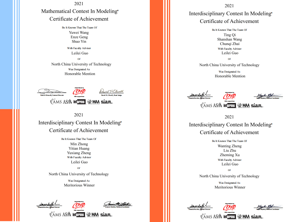 近日,由美国数学及其应用联合会主办的2021年国际老员工数学建模竞赛(MCM/ICM)成绩揭晓。公司有7个代表队参赛,共获得一等奖(Meritorious Winner)2项、二等奖(Honorable Mention)2项。