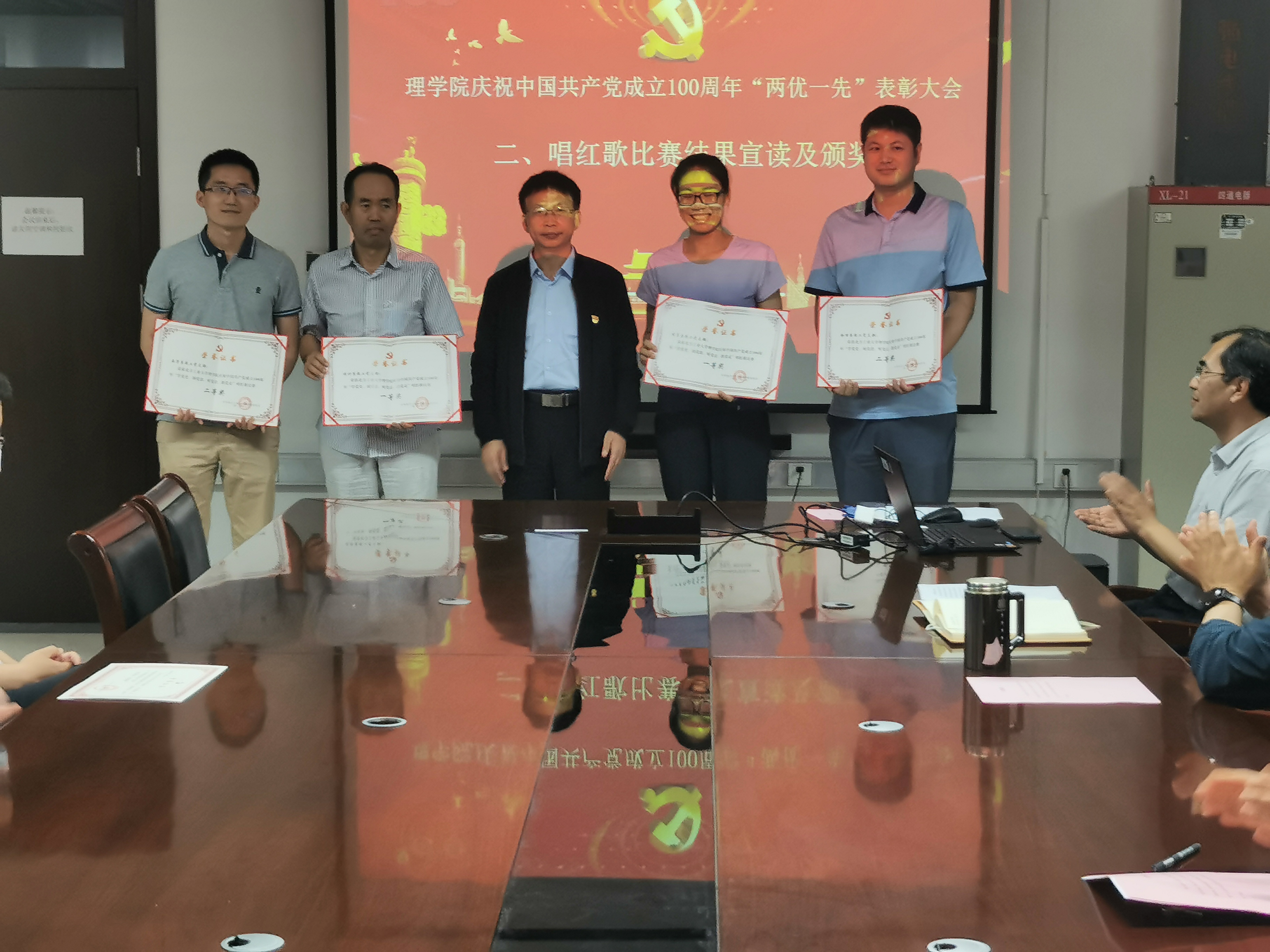 7月1日上午,365best体育官网登录在博远楼805举行庆祝中国共产党成立100周年“两优一先”表彰大会。公司党委委员、公司领导班子全体、公司全体教工党员参加了会议。会议由理公司党委副书记李冱岸主持。