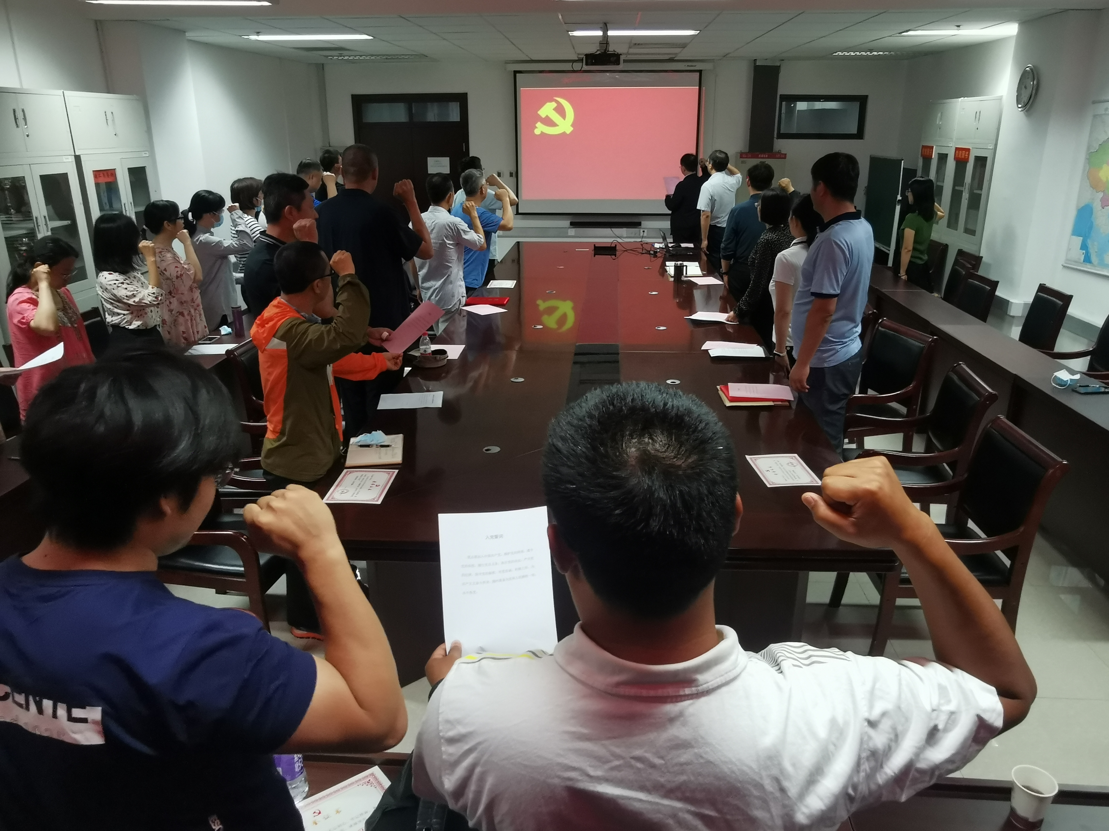 随后,全体参会党员重温了入党誓词,龚维华书记领誓。365best体育官网登录全体党员以洪亮的声音和饱满的情绪共同宣读了入党誓词。
