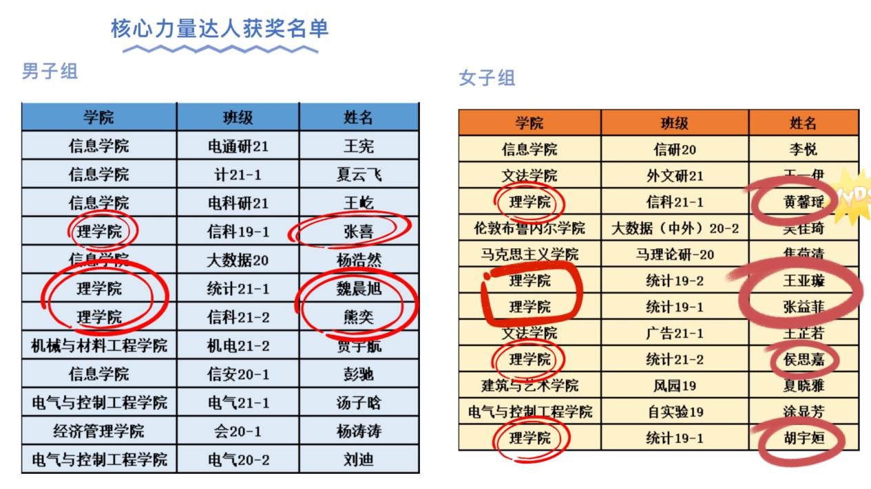 第一期比拼中理院学子共有8人获得核心力量达人称号,占全校获奖同学的三分之一,累计参与人次居全校第一,在此过程中,同学们积极关注、踊跃参与、认真准备,以持之以恒的锻炼保持健康体魄,以酣畅饱满的精神迎接美好未来。在打卡视频中,同学们都十分认真,动作非常标准,展现了理院学子积极参与体育运动“拼搏,进取,青春,活力”的精神风貌,很多同学都养成了坚持锻炼的好习惯。