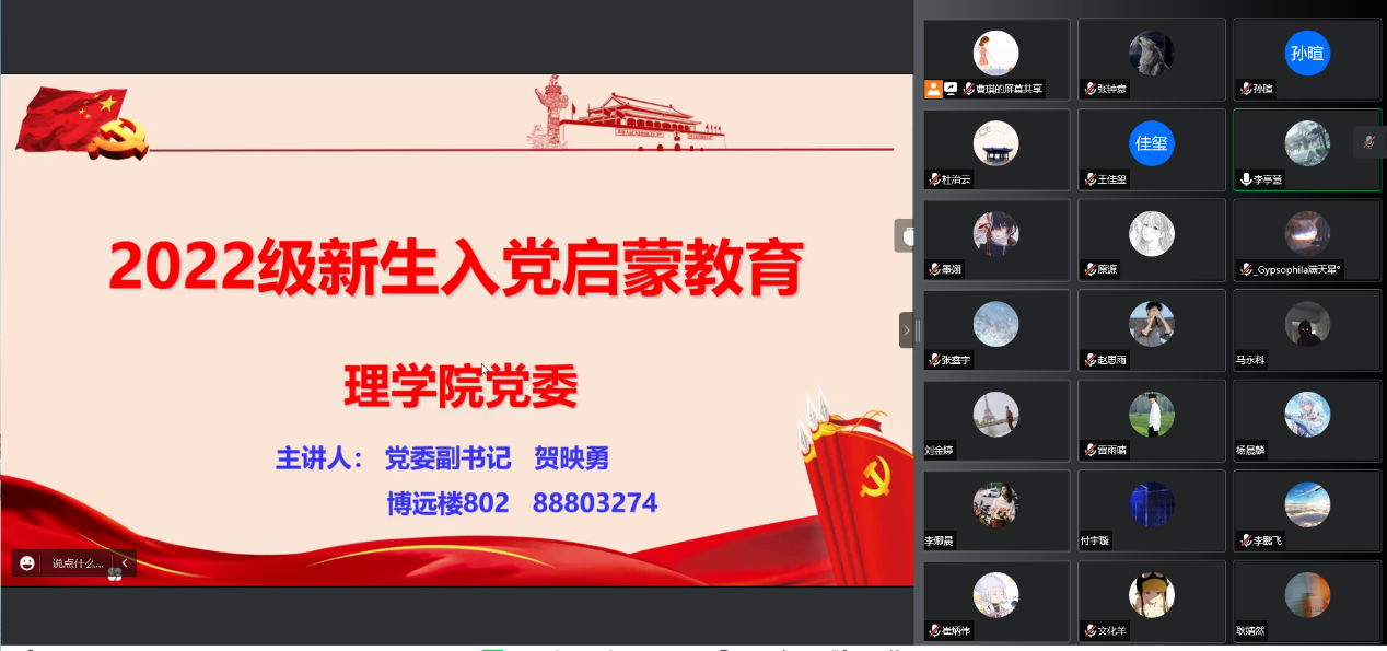 9月28日,理公司党委通过线上腾讯会议方式,召开2022级新生入党启蒙教育大会。公司党委副书记、党支部书记代表、党务秘书、新生辅导员和全体2022级新生参加了会议。