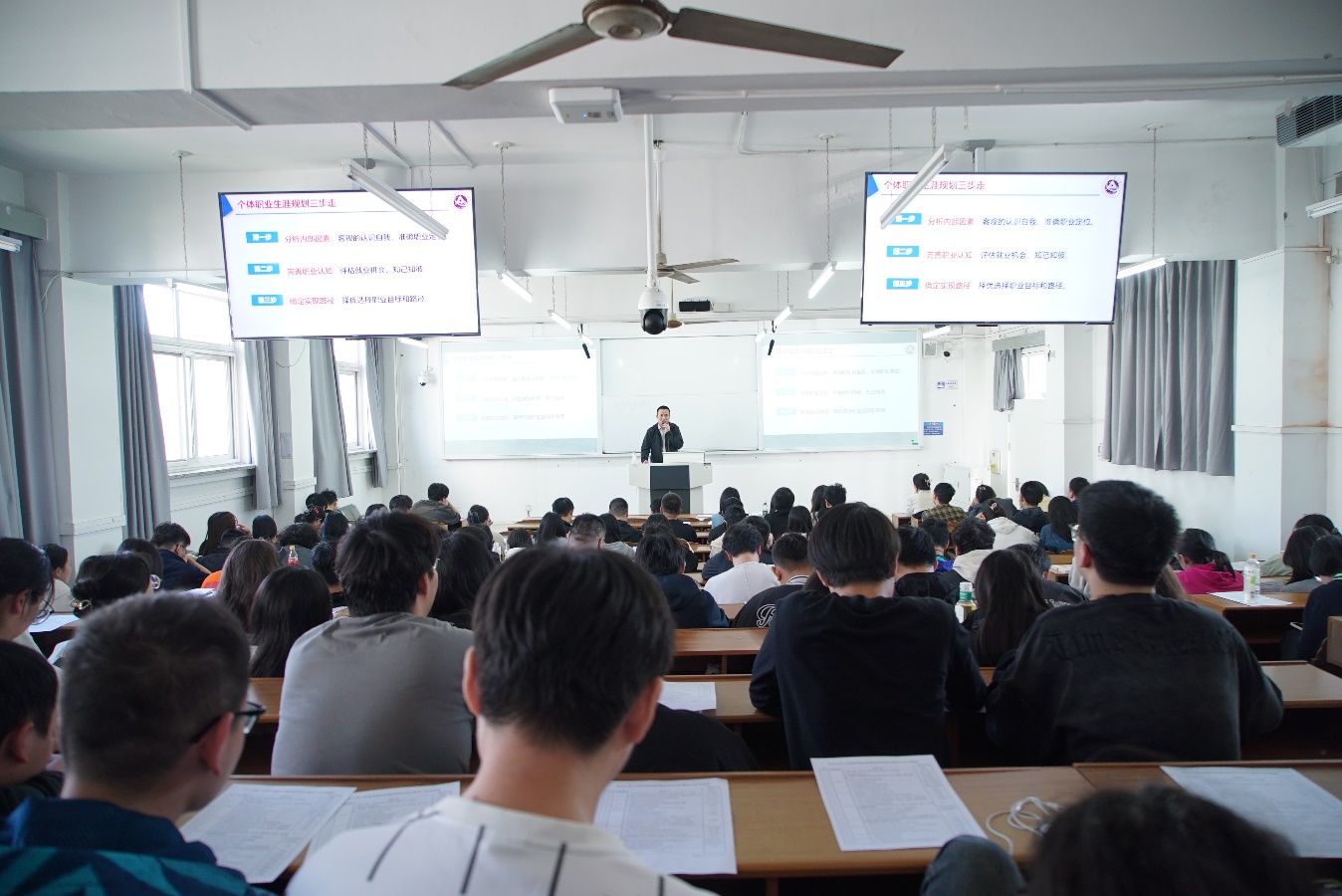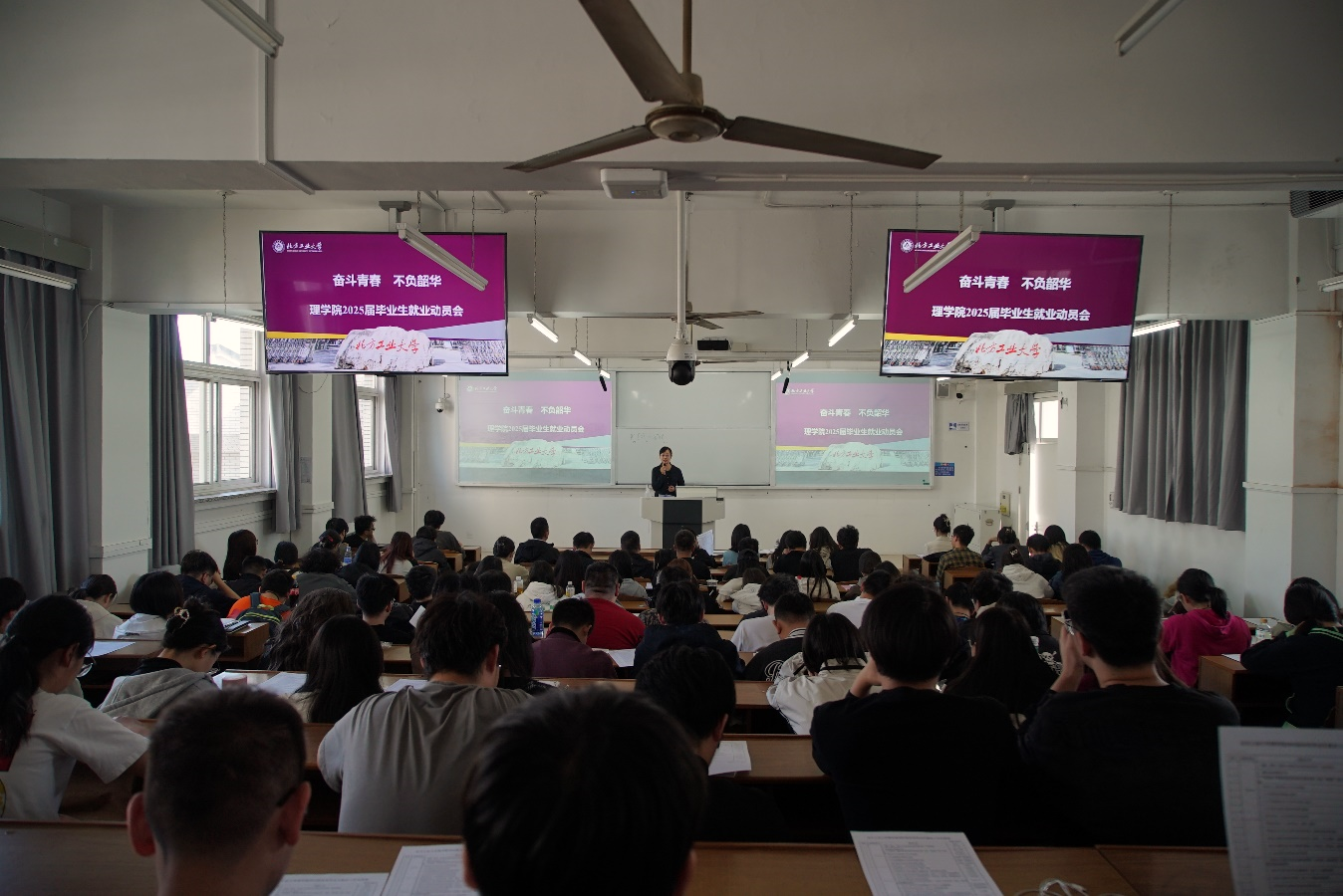 动员会上,杨嵩松对2025届全体毕业生提出三点希望:一是要未雨绸缪,洞悉当前就业形势,合理规划职业目标,确保职业道路的清晰与稳健;二是要敢于行动,充分利用校院两级提供的丰富就业资源平台,积极参加双选会,主动加强与专业教师、班导师和辅导员的沟通与交流;三是要坚持不懈,不断总结求职经验,提高求职心理韧性,不断提升自身求职核心竞争力。