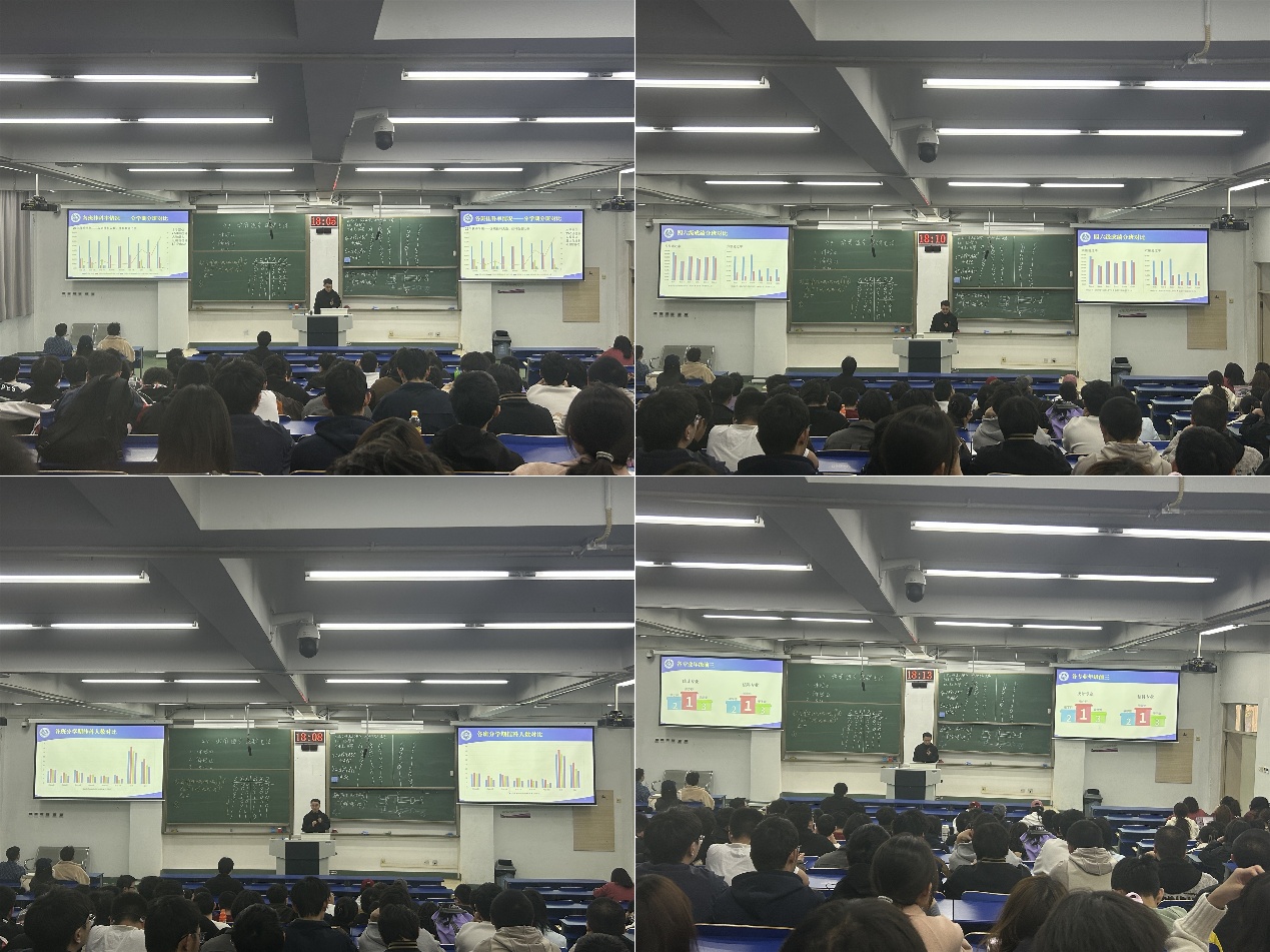 班会通报了2023级员工三个学期以来的学业数据,重点对各班级、各专业在各学期的挂科人数、挂科率、挂科门数、补考通过率及年级排名情况进行对比分析,班会还通报了2023级员工截至目前各班级、各专业的四六级报考通过率、班级通过率及排名情况。通过可视化的数据呈现,进一步增强员工自我反思意识,凝聚榜样力量,激发班级间“比学赶超”的良性竞争氛围,为构建“全员参与、全程跟踪、全方位覆盖”的学风治理体系奠定坚实基础。