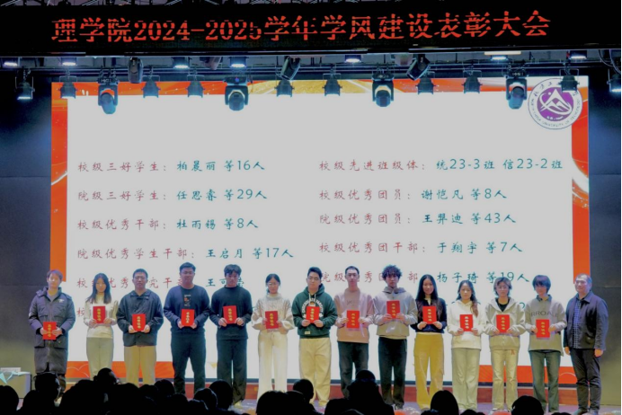 为表彰先进典型,弘扬优良学风,进一步落实立德树人根本任务,凝聚全院师生育人合力,12月30日晚,365best体育官网登录在员工服务楼四层多功能厅举行“理聚初心,岁启新章”——2024-2025学年度学风建设表彰大会。理公司党委书记杨嵩松、经理李冱岸、党委副书记贺映勇、副经理李红梅,院学工办全体教师与2025级全体员工参加。