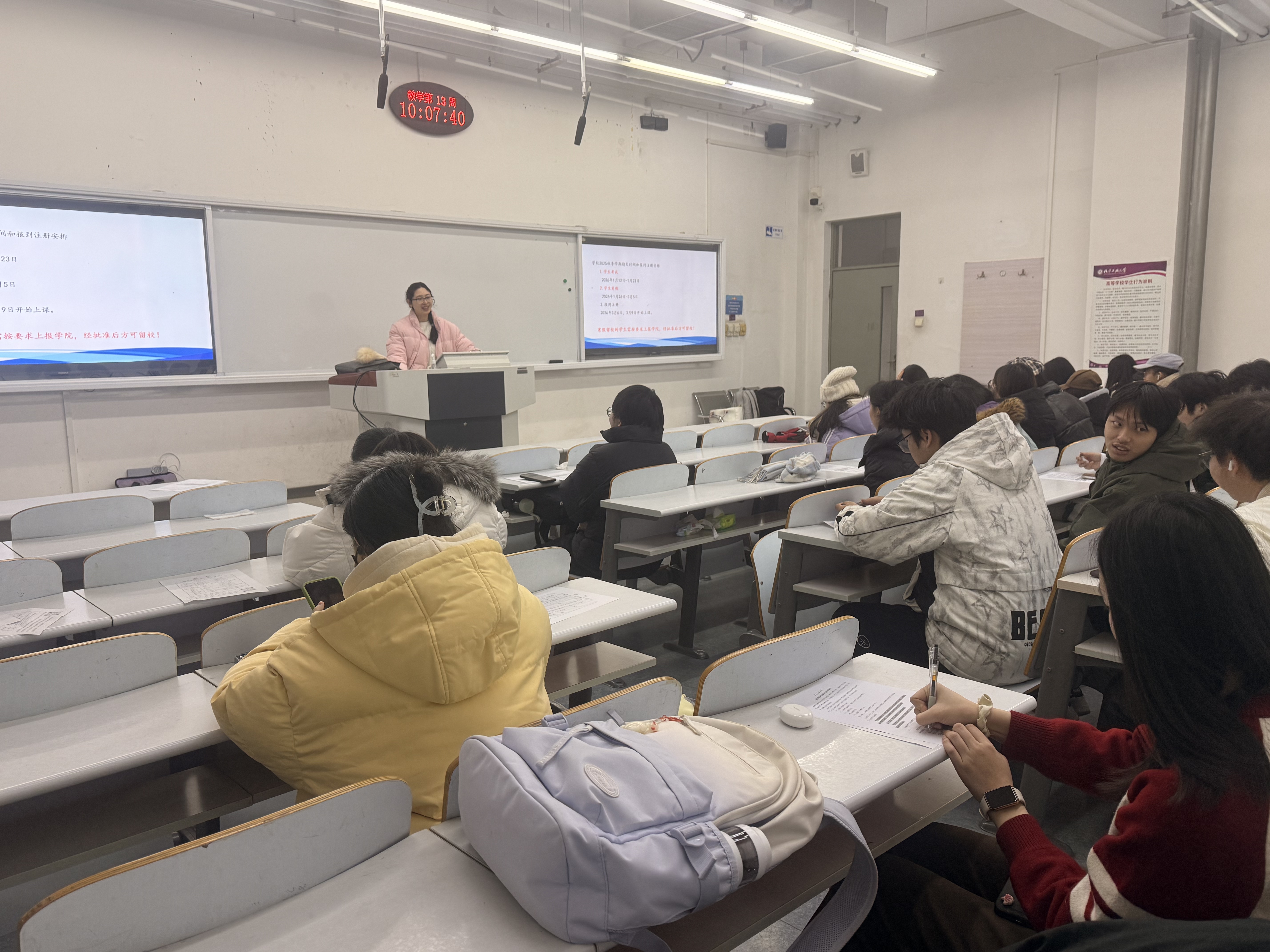 班会上,班导师们首先回顾过往,肯定了大家上学期在学业、科研和竞赛等方面取得的优异成绩,同时指出当前在学风、宿风等方面存在的不足,鼓励同学们正视问题、积极改进、迎头赶上。