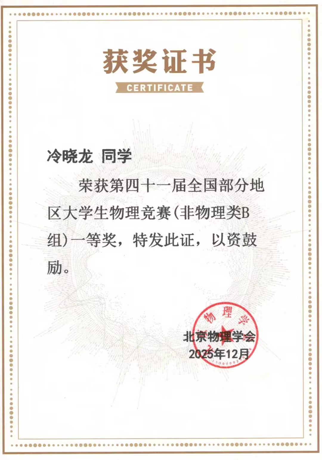 公司员工在全国部分地区老员工物理竞赛中荣获佳绩