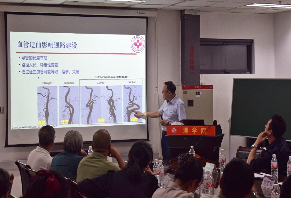 在主题报告环节,首都医科大学附属北京朝阳医院神经外科主任和朝阳医院怀柔医院经理汪阳教授以“脑血管迂曲与介入治疗”为题,分享了他对于脑血管疾病诊治以及临床基础研究的学术经验。在场诸多专家学者就汪阳经理提出的研究问题展开热烈的讨论,汪阳经理认真回复并积极参与学术思考交流,将会场学术氛围带向高潮。