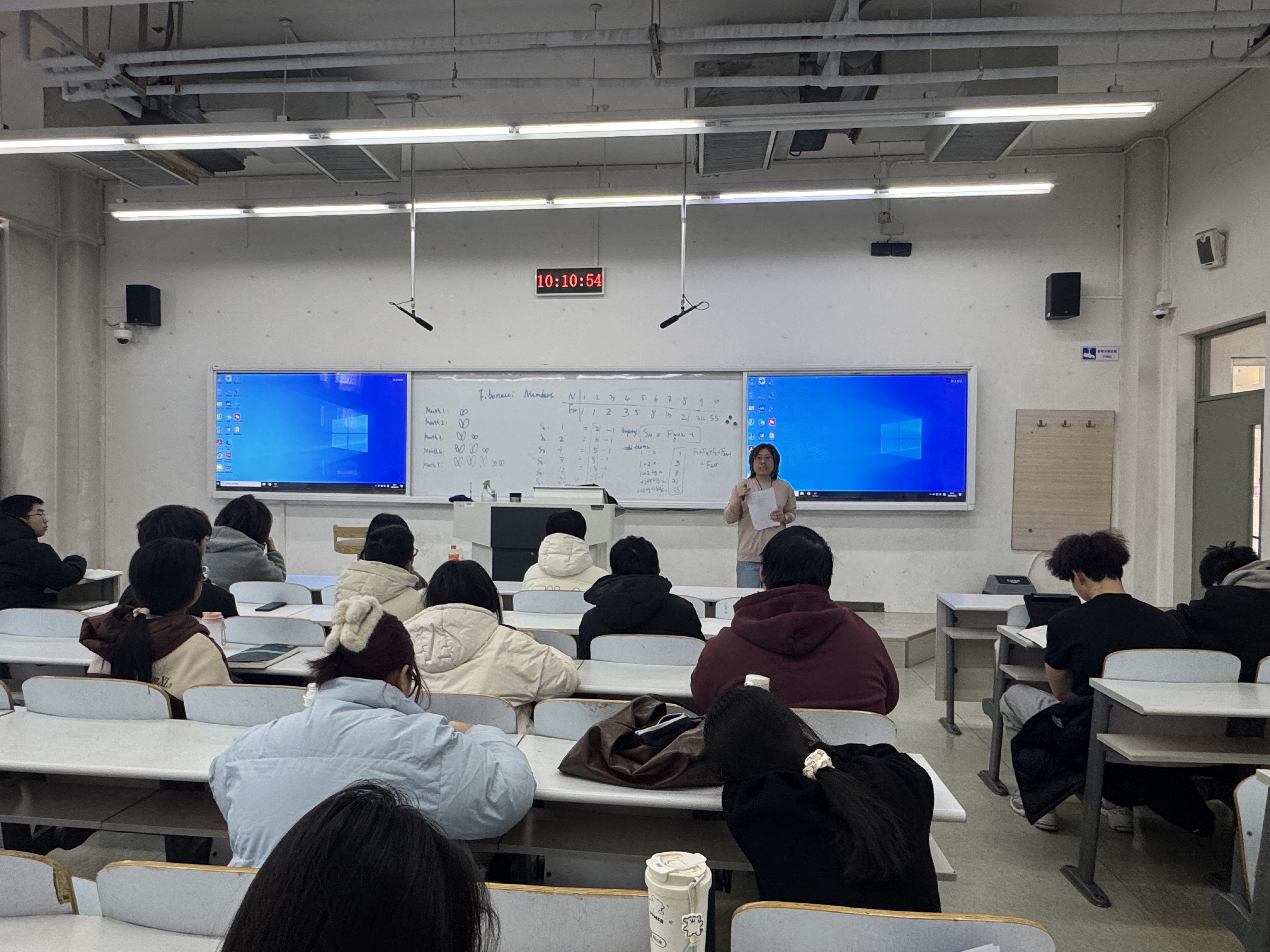讲座伊始,王新丽深情回忆了在母校求学的点点滴滴,表达了对母校培养的感激之情。她表示,母校严谨的学风和浓厚的学术氛围为她日后的学术研究奠定了坚实的基础,此次受邀回校讲座,她倍感荣幸,也希望借此机会为母校的发展贡献一份力量。随后,王新丽博士以生动有趣的方式介绍了斐波那契数列的起源,并引导在场师生共同探索这一神奇数列的奥秘。她从自然界中的斐波那契数列现象入手,逐步深入讲解了斐波那契数列的定义、性质以及其在数学等领域的广泛应用。