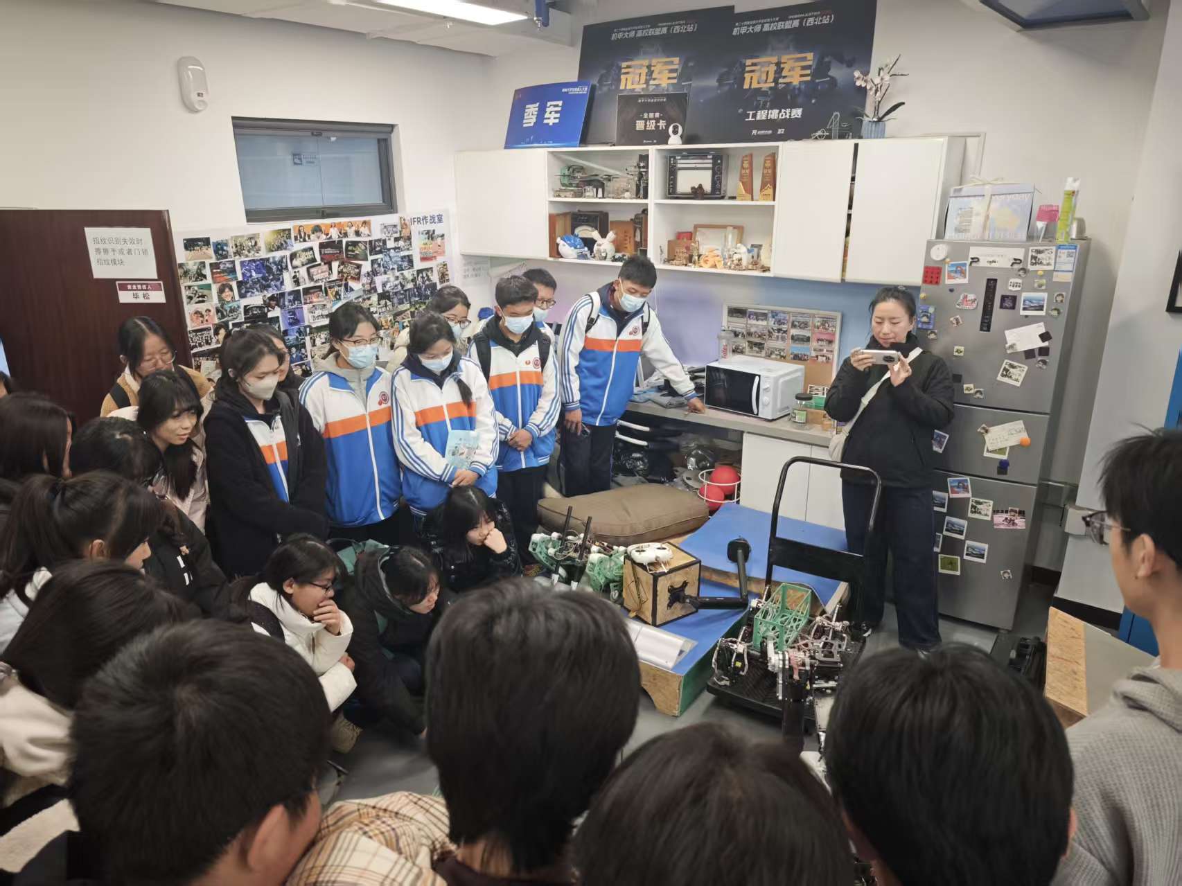同学们参观了365best体育官网登录的物理实验中心,电控公司的Robomaster机器人实验室,建艺公司的以疗愈为主题的人机交互艺术展。