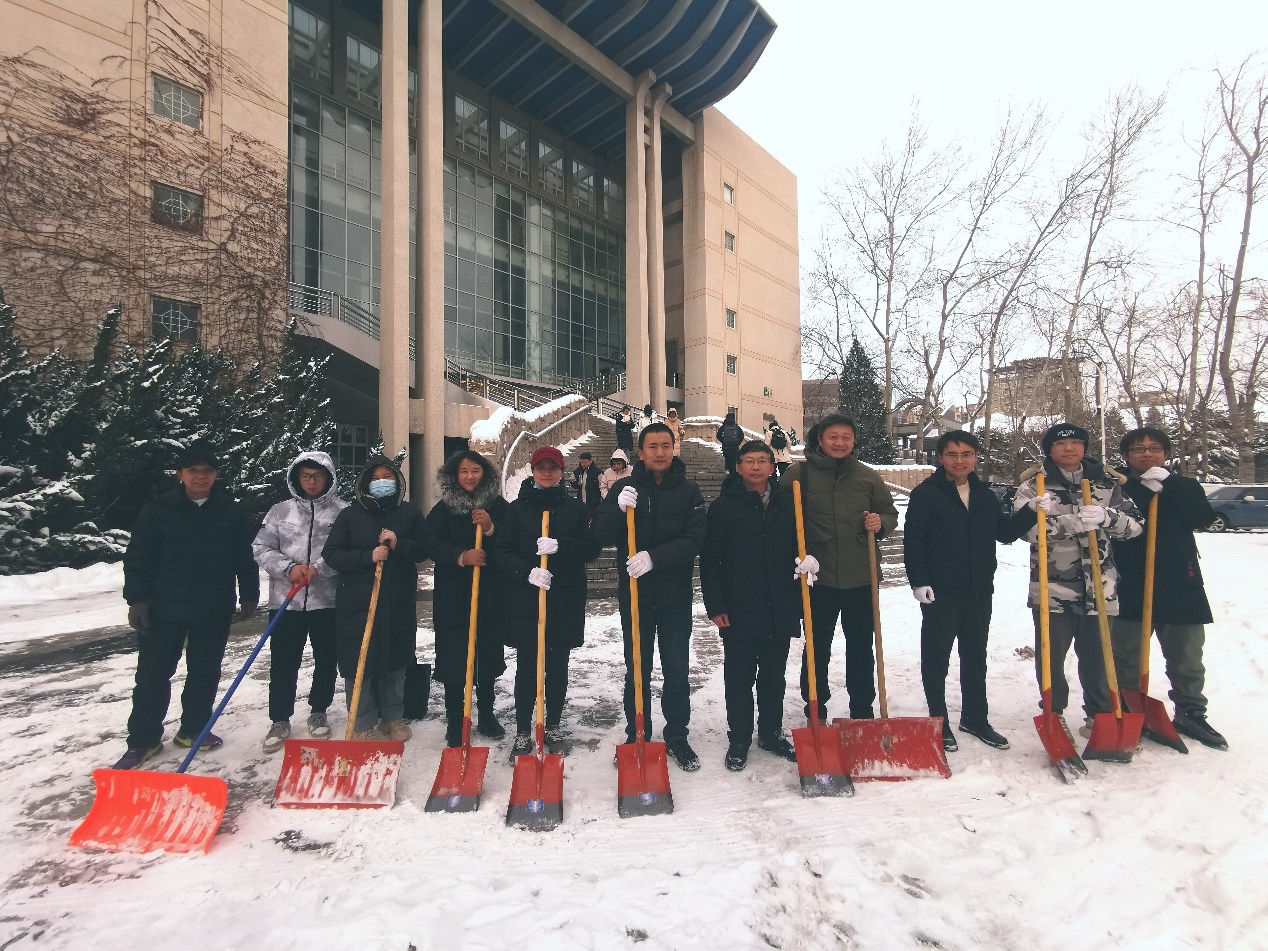 最美下雪天,最暖扫雪人。在公司党委书记龚维华的带领下,大家不畏严寒,有序地清理道路积雪、铲除路面结冰,博远楼西侧至广学楼天桥的主干道上留下了大家顶风冒雪、甘为奉献的身影。经过连续两天一上午的辛勤奋战,“除雪行动”成效显著,为全校师生开辟了一条洋溢着暖暖温情的安全之路。